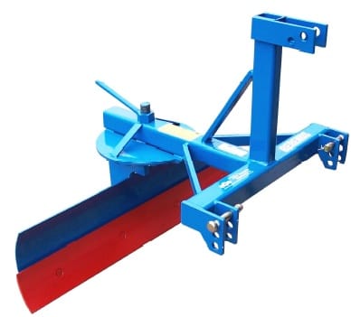 4′ compact fixed grader blade with heavy Duty reversible cutting edge & blade angle adjustment. No offset or tilt function.
